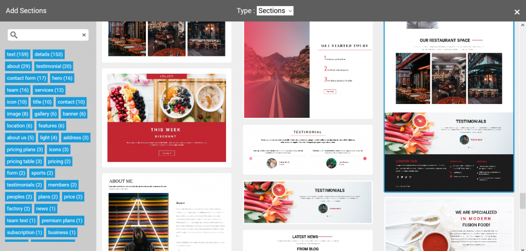 - [Improvement] The Add Section wizard, has been further improved. The speed of image loading has also improved and we will improve the sections further.