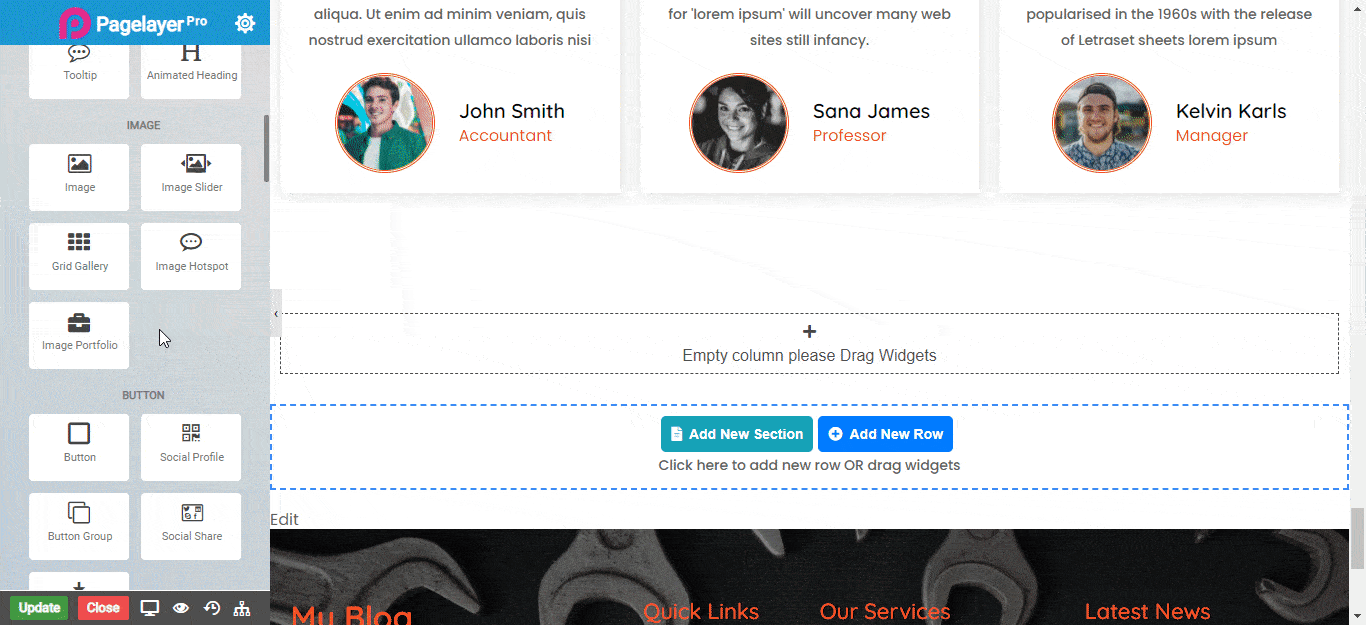 The gallery widget is extraordinary and allows you to make beautiful photo galleries in no time. Select various layouts, choose column width, column spacing, lightbox options and more.