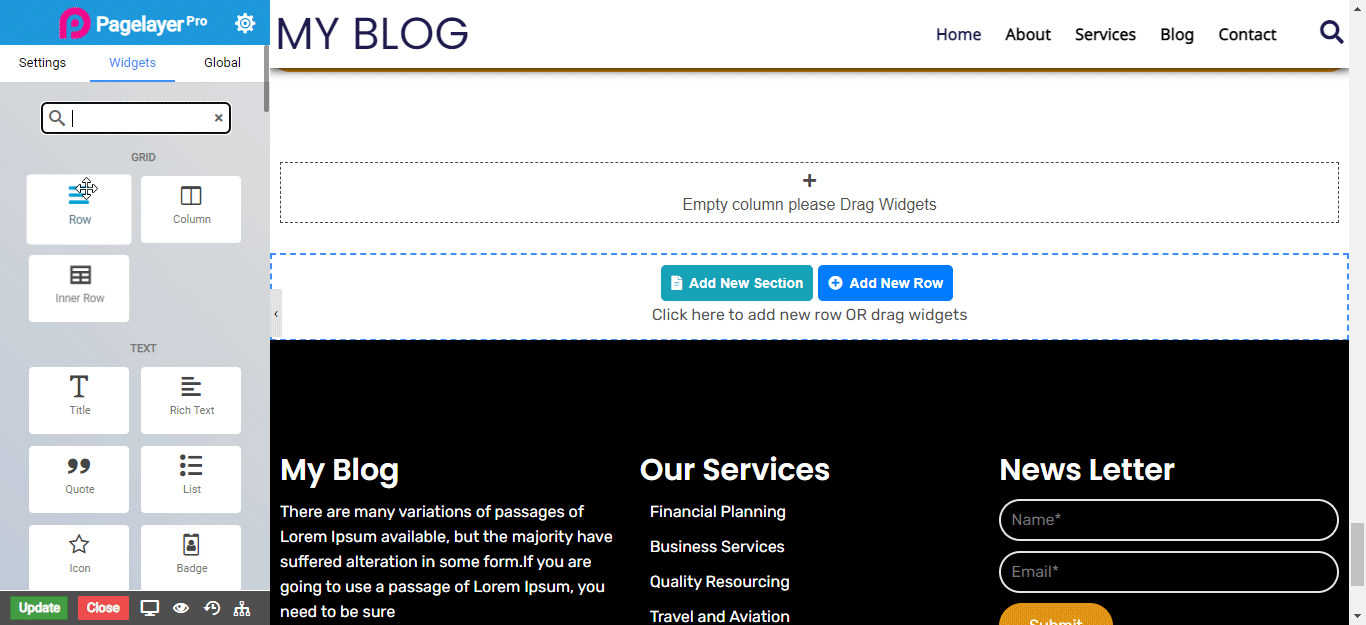 - Typography : Choose the Font-name, size, boldness, text-decoration, letter-spacing.